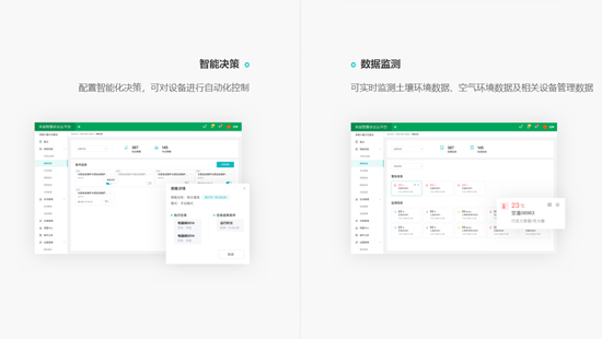 2020年公司專注于智慧農(nóng)業(yè)關(guān)鍵技術(shù)研發(fā),積極探索重慶智慧農(nóng)業(yè)發(fā)展新方向。先后服務(wù)酉陽、石柱、南川、北碚等區(qū)域客戶智慧農(nóng)業(yè)云平臺建設(shè),受到業(yè)主一致好評。公司始終堅持“產(chǎn)品+數(shù)據(jù)+技術(shù)+服務(wù)”的發(fā)展模式,致力于智慧農(nóng)業(yè)整體解決方案研發(fā)和服務(wù)。通過數(shù)據(jù)和技術(shù)雙輪驅(qū)動,實現(xiàn)農(nóng)業(yè)規(guī)?;?、精準(zhǔn)化、智能化。